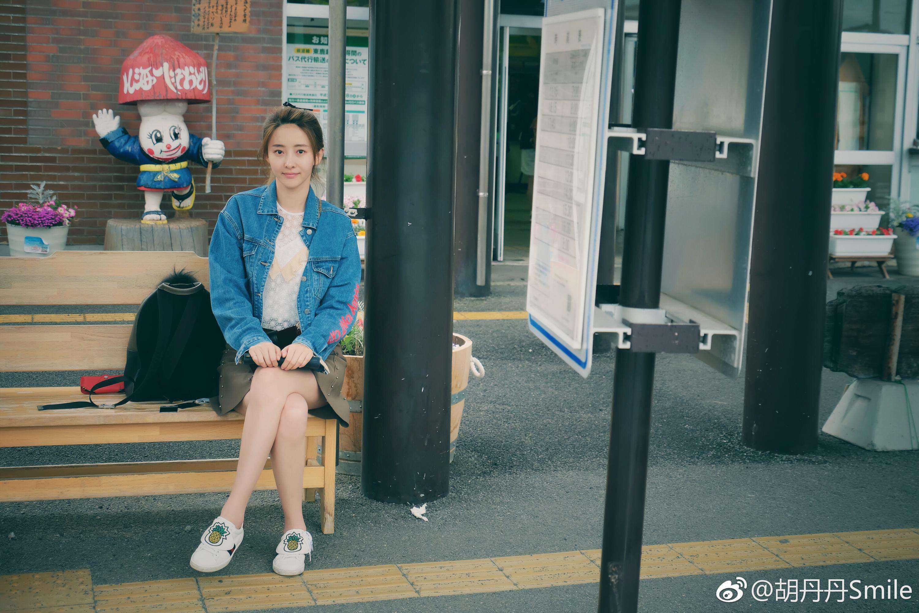 胡丹丹倚靠栏杆远眺,超短裙与恨天高展现其高挑身姿,神态放松自然