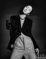 鞠婧祎身着黑色时装,指尖与颈间FANCI范琦珠宝交相辉映,尽显酷雅魅力